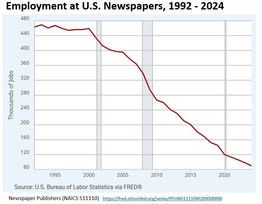 Now, the Post is 30% smaller. It is yet another salvo in the three-decade-long destruction of the US newspaper industry. Via Jess Calarco on Bluesky: