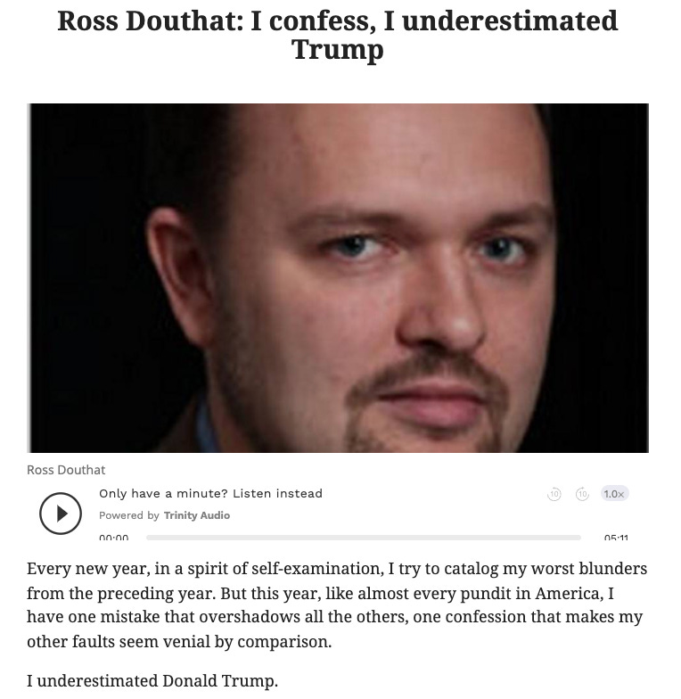 Douthat’s white-guy confidence means he learned nothing from his own underestimation of Trump. Despite this column during the 2016 campaign: