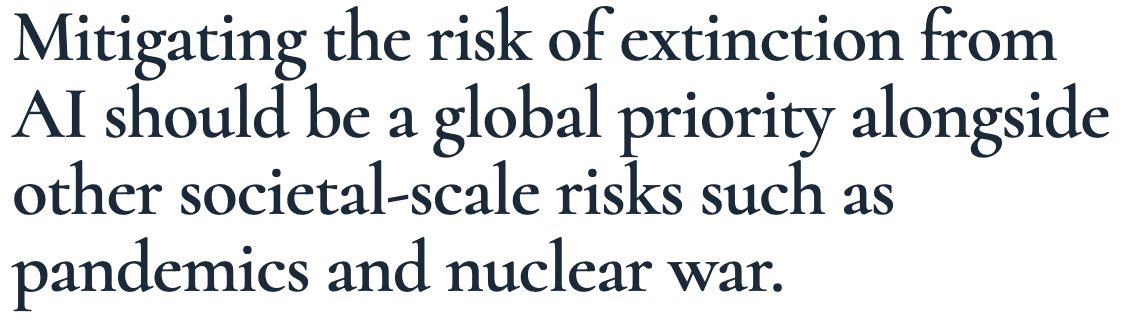 That was the remarkable May 2023 one-sentence statement from CEOs of AI companies, along with Bill Gates and other notable figures, for the Center for AI Safety. 🤦🏾♂️